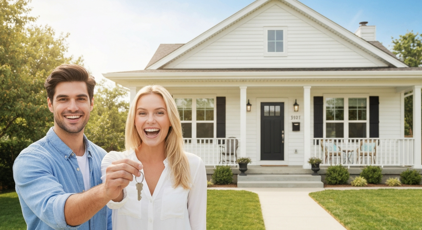 - Hero Image: A young couple or individual holding house keys in front of their new home, looking excited and relieved. Genuine, diverse representation. Conveys “this is possible for you.”